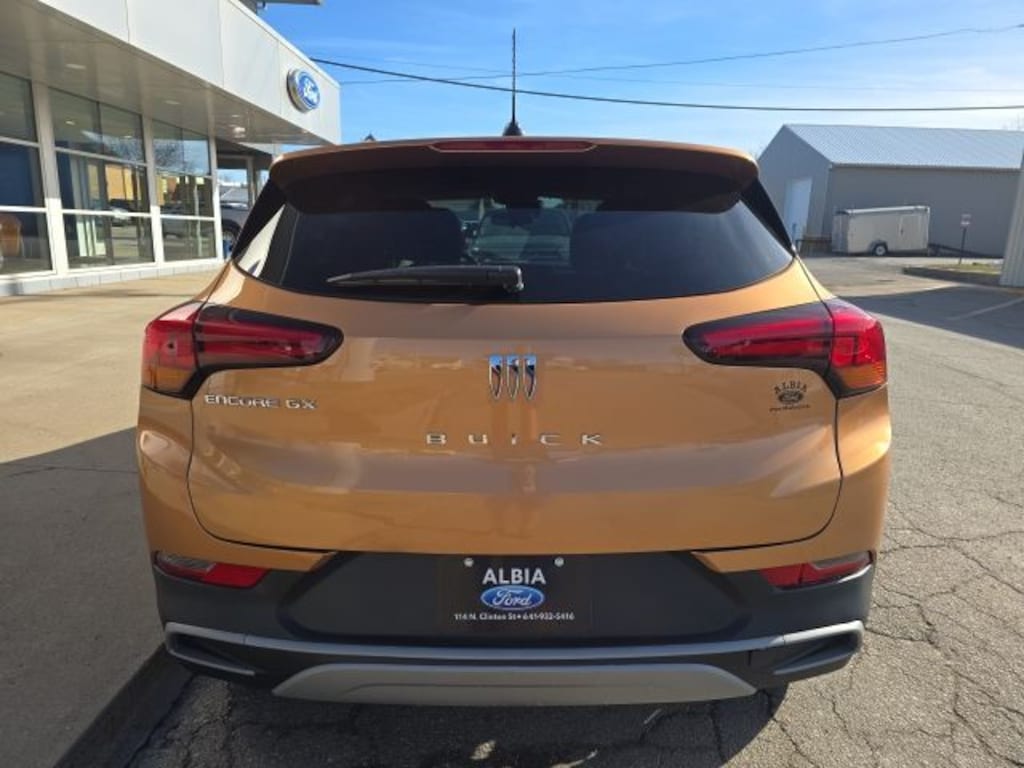 Ride and handling are enhanced by the Ride & Handling Suspension, Speed-sensing steering, and 4-Wheel Disc Brakes, ensuring a confident and responsive driving experience. The 18" Bright Silver Painted Aluminum wheels add a touch of style to the Encore GX's sleek exterior.