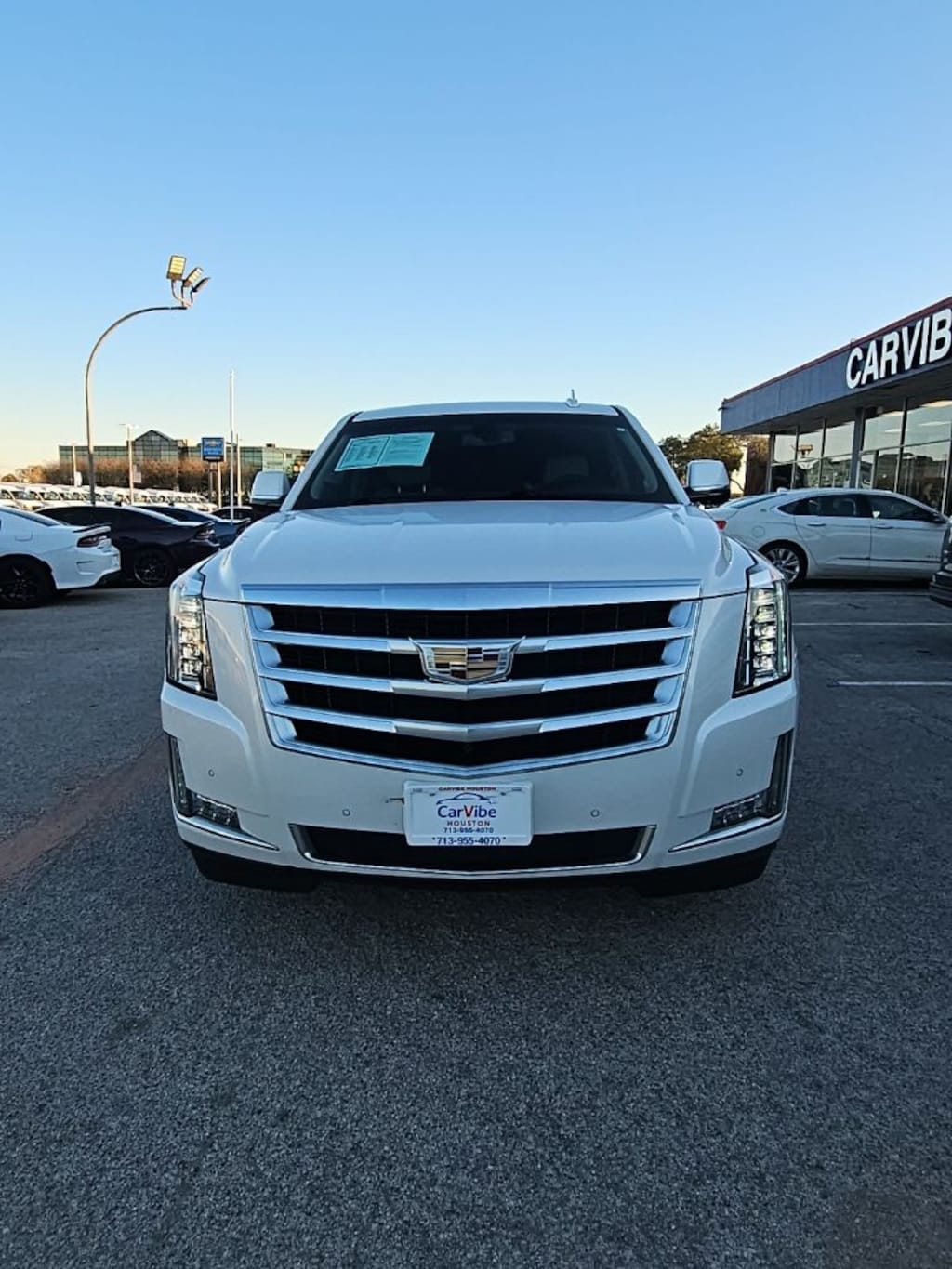 Crystal White Tricoat 2019 Cadillac Escalade RWD 10-Speed Automatic with Overdrive 6.2L V8 Shale With Jet Black Accents Leather.
