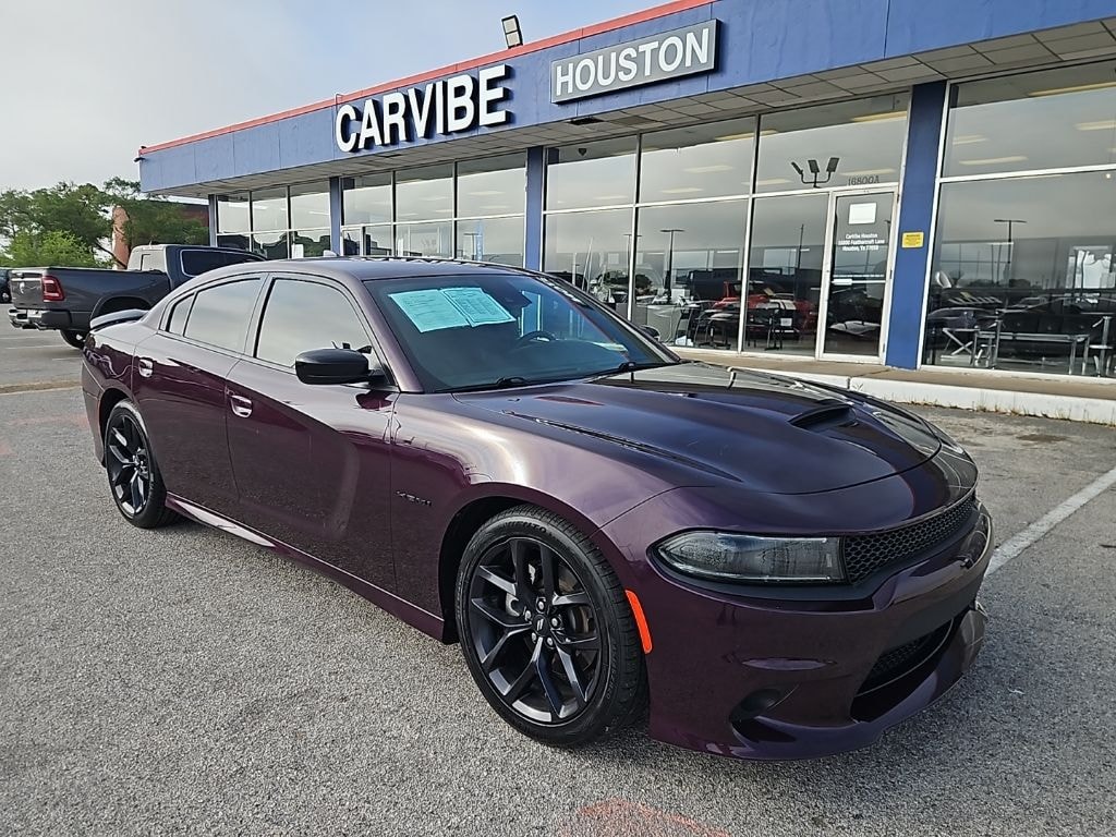 Introducing the 2022 Dodge Charger R/T - a true performance icon that blends power, style, and advanced technology. This stunning purple Charger is equipped with the legendary HEMI 5.7L V8 engine, delivering an exhilarating driving experience that's sure to captivate your senses.